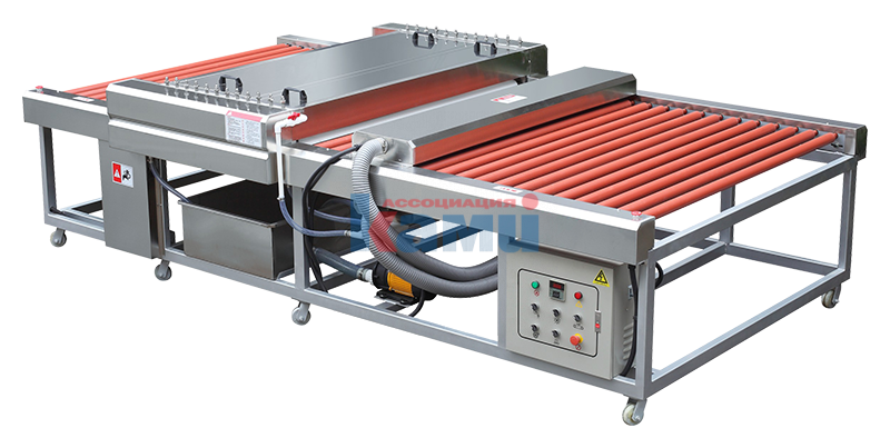 Предназначен для одновременной мойки двух поверхностей стекла за один проход четырьмя парами щеток с целью обезжиривания пластей,удаления остатков оксида церия после полировки кромки и от абразивного материала после матирования и т. д.