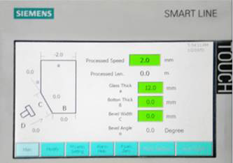 ![]() | ПАНЕЛЬ УПРАВЛЕНИЯ PLC Удобно расположенная панель управления,установленная в передней части станка,предназначена для осуществления ввода,регулировки и контроля всех процессов обработки стекла. Основные приборы,осуществляющие контроль агрегатов,позволяют в автоматическом режиме прослеживать нагрузки на шлифовальные круги во время обработки кромки стекла. |