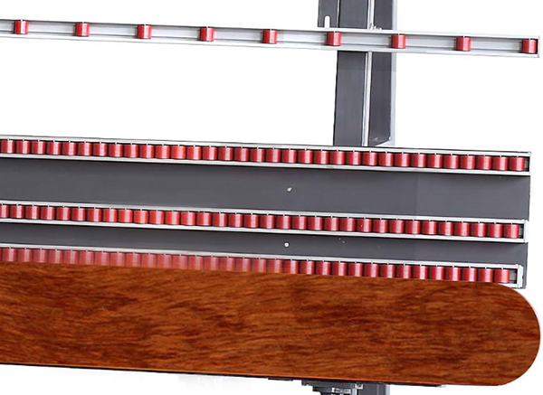 ![]() | ЕДИНЫЙ ПРИВОД ПОДАЧИ Натяжение конвейера осуществляется с помощью винтов,что обеспечивает равномерное перемещение подаваемой заготовки. |