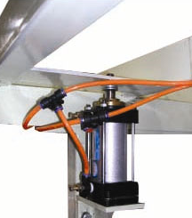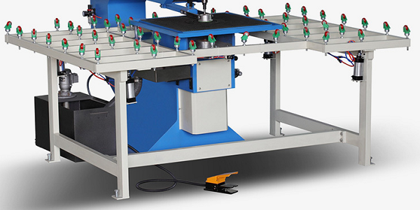 ![]() | ПОДЪЕМ ПНЕВМАТИЧЕСКОГО СТОЛА Необходим для осуществления свободного перемещения стекла большого размера по роликам относительно основного обрезиненного стола. Обеспечивается четырьмя пневмоцилиндрами,установленные в углах стола. |